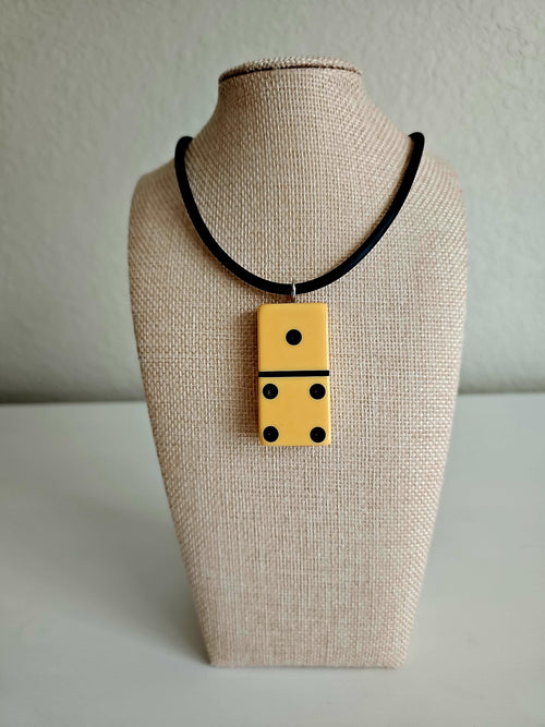 All of our jewelry is handmade in the Pacific Northwest of the U.S. from a curated collection of vintage domino sets. Most are from the mid-century era, but some date to as early as the 1930s. Each series is made from a single set of dominoes, and each domino is hand engraved with its series number and its number within the set, making each piece one of a kind.